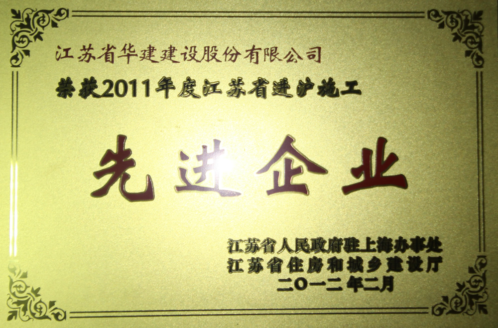 3月5日,在江蘇省政府駐滬辦、江蘇省住房和城鄉(xiāng)建設(shè)廳召開的2011年度江蘇進(jìn)滬施工總結(jié)表彰大會(huì)上,江蘇華建被表彰為“江蘇省進(jìn)滬施工先進(jìn)企業(yè)”,這已是第九次獲次殊榮;表彰會(huì)上,上海洛克外灘源項(xiàng)目部被評(píng)為優(yōu)秀項(xiàng)目部,另有5人被評(píng)為優(yōu)秀建造師,各有1人被評(píng)為安全管理先進(jìn)個(gè)人、質(zhì)量管理先進(jìn)個(gè)人、經(jīng)營(yíng)管理先進(jìn)個(gè)人、財(cái)務(wù)管理先進(jìn)個(gè)人。