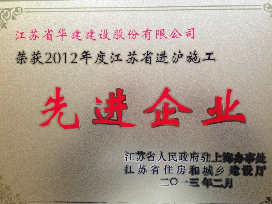 3月5日,在江蘇省政府駐滬辦、江蘇省住房和城鄉(xiāng)建設(shè)廳召開的2012年度江蘇進(jìn)滬施工總結(jié)工作大會(huì)上,江蘇華建被表彰為“江蘇省進(jìn)滬施工先進(jìn)企業(yè)”,這已是第十次獲此殊榮;表彰會(huì)上,有1人被被評(píng)為優(yōu)秀企業(yè)經(jīng)理,有5人被評(píng)為優(yōu)秀建造師,各有1人被評(píng)為安全管理先進(jìn)個(gè)人、質(zhì)量管理先進(jìn)個(gè)人、經(jīng)營(yíng)管理先進(jìn)個(gè)人。