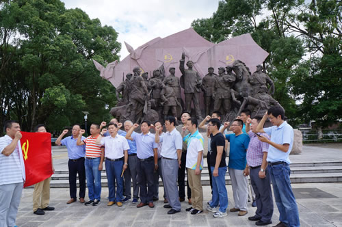 上海分公司黨總支組織開展“紅色之旅”教育 時間:2016-08-16 4340 8月12日,上海分公司黨總支組織部分黨員干部和入黨積極分子共18人,赴愛國主義教育基地福建古田開展“促兩學一做,走紅色之旅”教育活動,在“主席園”向毛主席像敬獻花籃,在“豐碑軍魂”雕像前面對黨旗重溫入黨誓詞,還仔細參觀古田會議地址和紀念館,回顧緬懷了老一輩無產(chǎn)階級革命家的不朽事跡。大家牢記“古田會議永放光芒”精神,紛紛表示:“不忘初心,繼續(xù)前行”。