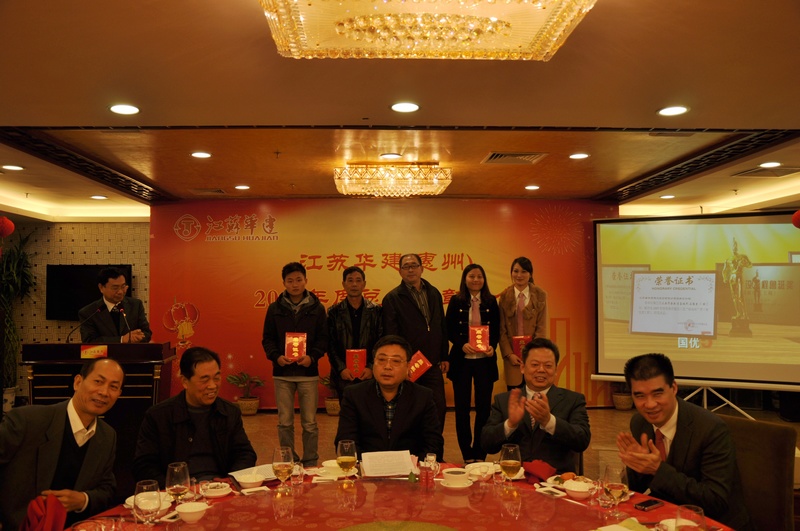 在隨后的迎春聯(lián)誼會上,一臺由惠州公司上下精心準備、齊力打造、自編自演的精彩演出,表達出了廣大員工對2012年取得業(yè)績的自豪與喜悅,以及對公司美好未來的憧憬與向往。在演出中,由機具處員工莊曙演繹的男聲獨唱,以高亮的美聲唱法,讓在座嘉賓擊掌叫好;四位機關員工表演的三句半《華建style》,詼諧幽默談發(fā)展,回顧展望頌華建,讓在場觀眾掌聲不斷;蔡總和華總兩位領導帶頭獻歌,唱出了華建人對事業(yè)的激情與豪邁,對未來的堅定與信仰。最后,由宗總、林總兩位總部領導和惠州公司12名男女員工組成的合唱團獻上的一曲《華建之歌》更是將整個活動推向了高潮,臺上的小合唱變成了在場華建人的大合唱,掌聲歡呼聲此起彼伏,年會在歡歌笑語中圓滿結束。新年思變,實干興業(yè),華建人立足惠州,一路高歌,奮勇前行。