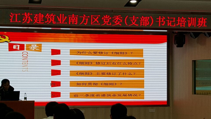 會(huì)上,江蘇省住房和城鄉(xiāng)建設(shè)廳機(jī)關(guān)黨委副書記丁舜祥針對(duì)《中國(guó)共產(chǎn)黨發(fā)展黨員工作條例》作了專題講座,詳細(xì)講解工作條例的主要內(nèi)容和特點(diǎn)、發(fā)展黨員工作的總要求、發(fā)展黨員工作的基本原則、黨員發(fā)展的條件標(biāo)準(zhǔn)、發(fā)展黨員的主要流程等方面內(nèi)容,并針對(duì)南方地區(qū)基層組織發(fā)展中存在的一些問(wèn)題提出了明確要求。江蘇省住房和城鄉(xiāng)建設(shè)廳駐南方辦事處主任朱躍斌傳達(dá)了《住建廳黨組書記顧小平在廣東省調(diào)研重要講話指示精神》以及《住建廳駐外辦事處民工工資清欠工作精神》,并對(duì)建筑企業(yè)的進(jìn)一步發(fā)展提出了指導(dǎo)性意見(jiàn)。