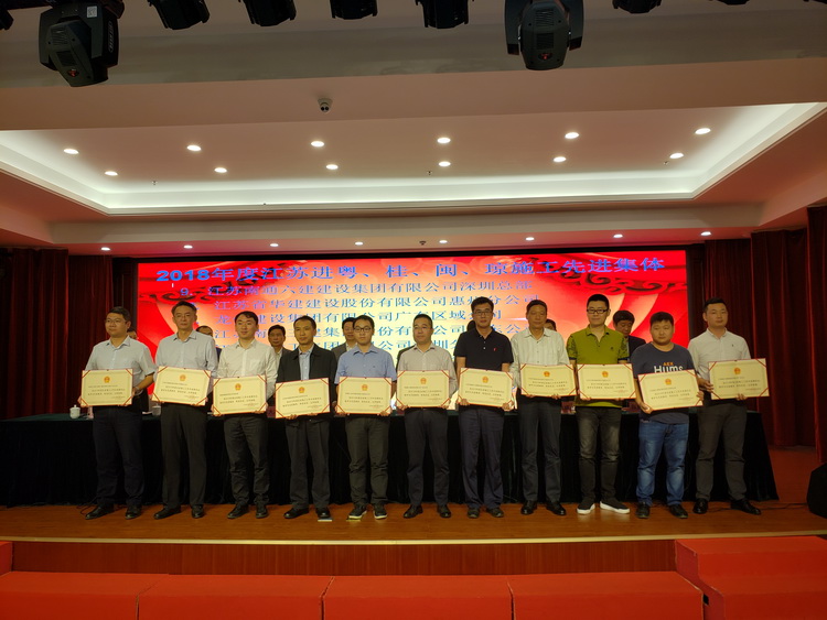 會議表彰了一批江蘇出省施工先進集體及先進個人。其中,惠州公司被江蘇省住房和城鄉(xiāng)建設(shè)廳表彰為2018年度江蘇出省施工先進集體,總經(jīng)理周群利、技術(shù)質(zhì)量處主任陳申高被江蘇省住房和城鄉(xiāng)建設(shè)廳表彰為2018年度江蘇出省施工先進個人;黃秀剛、邵群斌、王興東分別被江蘇省人民政府駐深圳(廣州)辦事處表彰為2018年度江蘇進粵、桂、閩、瓊施工質(zhì)量安全、經(jīng)營財務(wù)和新聞報道先進個人。