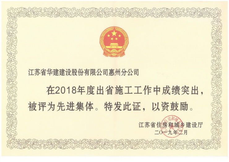 惠州公司喜獲江蘇出省施工多項榮譽