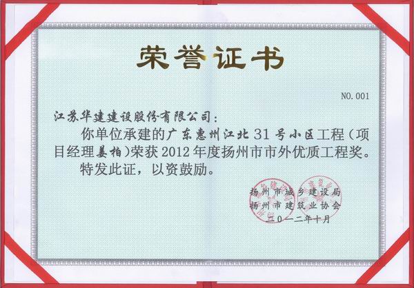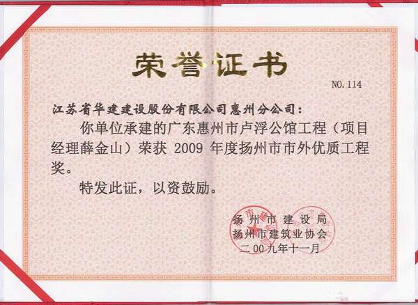2015年揚州市市外優(yōu)質(zhì)工程獎