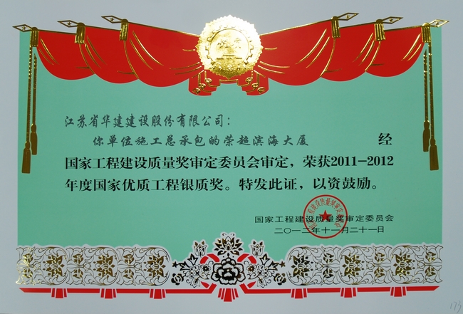 該工程先后榮獲2007年度深圳市優(yōu)質(zhì)結(jié)構(gòu)工程獎、2010年度深圳市優(yōu)質(zhì)工程“金牛獎”、江蘇省“揚子杯”優(yōu)質(zhì)工程獎,2012年項目QC管理小組榮獲“全國工程建設(shè)優(yōu)秀質(zhì)量管理小組”稱號,11月被評為2011-2012年度國家優(yōu)質(zhì)工程銀質(zhì)獎。