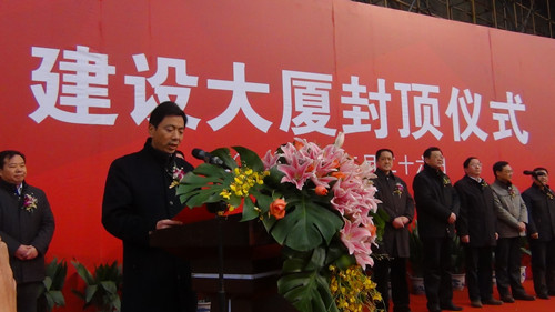 揚州建工控股有限責(zé)任公司董事長、黨委書記陸金龍董事長在封頂儀式上致辭。他說,建設(shè)大廈是體現(xiàn)市委、市政府民生城建理念的標志性項目之一,其中的城市規(guī)劃展覽館是提升城市品質(zhì)、展示城市未來宏偉藍圖、宣傳城市美好形象的重要陣地,市民中心是市民活動、交流、服務(wù)和區(qū)域文化展示的固定場所,這個項目的建設(shè)對進一步提升城市基礎(chǔ)設(shè)施建設(shè)水平,完善城市功能,提升城市品質(zhì),建設(shè)“三個揚州”都具有深遠和重要的意義。項目自2010年5月2日開工以來,作為項目投資建設(shè)主體,建工控股公司認真貫徹落實市委、市政府的指示精神,及時選派精干力量,切實優(yōu)化建設(shè)方案,合理調(diào)配資源,主動協(xié)調(diào)關(guān)系,確保項目建設(shè)高效、有序、廉潔推進。承擔(dān)建設(shè)代理任務(wù)的江蘇華建和承擔(dān)施工任務(wù)的揚建集團、揚安集團等單位發(fā)揚市直施工企業(yè)敢打善拼、精益求精的優(yōu)良作風(fēng),精心組織,精心施工,確保了質(zhì)量、工期和現(xiàn)場文明,體現(xiàn)了我市建筑精英的實力和水平。陸董事長指出,工程順利封頂標志著項目建設(shè)進入了一個新的階段,他希望項目管理團隊和全體建設(shè)單位進一步樹立大局意識、責(zé)任意識和精品意識,繼續(xù)加強與相關(guān)部門單位的協(xié)調(diào)配合,克服一切困難,瞄準既定目標,努力把建設(shè)大廈建成領(lǐng)導(dǎo)放心、群眾滿意、業(yè)主認可的優(yōu)質(zhì)工程、民心工程、標志工程,為精致?lián)P州增添一抹亮麗的風(fēng)景。