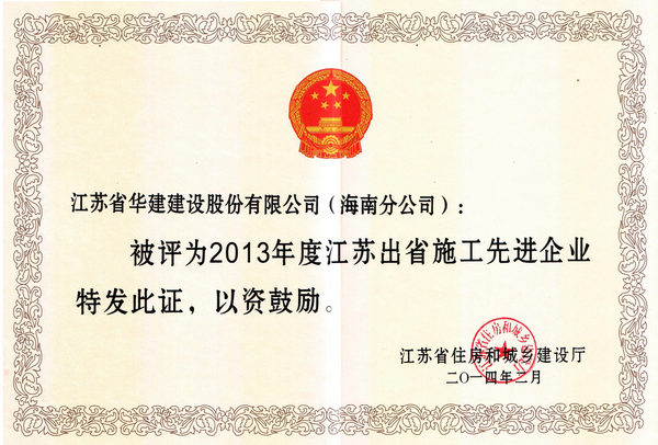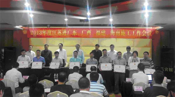 海南分公司榮獲2013年江蘇進(jìn)粵、桂、閩、瓊施工先進(jìn)企業(yè)
