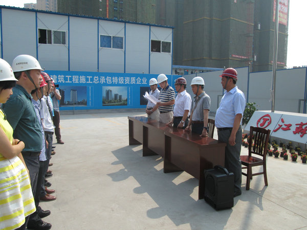 為深入踐行群眾路線,切實(shí)服務(wù)項(xiàng)目建設(shè),在活動(dòng)中 “精神提振、工作提標(biāo)、行政提效、服務(wù)提質(zhì)”,6月9日上午,宜昌市住建委黨的群眾路線教育實(shí)踐活動(dòng)“百名服務(wù)專員進(jìn)項(xiàng)目”活動(dòng)在我公司承建的興發(fā)廣場(chǎng)項(xiàng)目部正式啟動(dòng),市建設(shè)工程質(zhì)量(安全)監(jiān)督站等相關(guān)單位的六十余名服務(wù)專員參加了啟動(dòng)儀式。