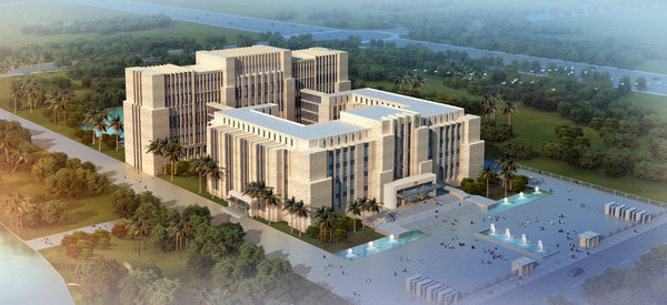 海南省第一中級人民法院審判法庭大樓工程位于海口市美蘭區(qū)江東白駒大道南側(cè),總建筑面積33980 平方米,分為審判法庭樓、法庭附屬樓兩棟建筑,是一座集審判業(yè)務(wù)、法律服務(wù)、辦公和法制教育于一體的綜合性公共建筑。
