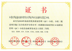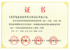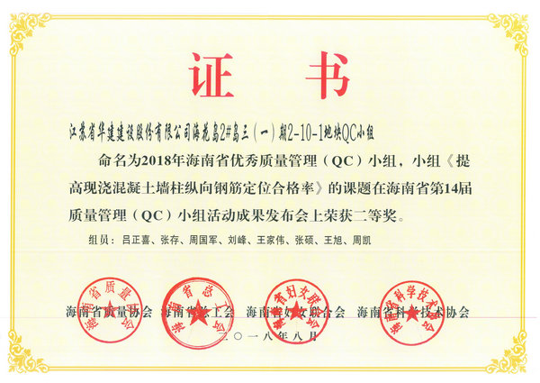 日前,海南省質(zhì)量協(xié)會(huì)公布了2018年海南省“優(yōu)秀質(zhì)量管理(QC)小組”活動(dòng)成果評(píng)比結(jié)果,海南分公司共有5項(xiàng)成果受到表彰。其中,海花島2#島三(一)期2-10-1地塊QC小組榮獲二等獎(jiǎng),博鰲三江口濱水旅游商業(yè)區(qū)(二期)項(xiàng)目部QC小組、三亞婦幼保健院整體搬遷(新址)建設(shè)項(xiàng)目QC小組、恒大海上帝景QC小組、華盛中央公園國(guó)際公寓QC小組榮獲三等獎(jiǎng)。