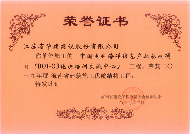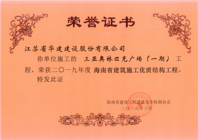 近日,海南省建設(shè)工程質(zhì)量安全監(jiān)測(cè)協(xié)會(huì)發(fā)文表彰了一批2019年度上半年海南省建筑施工優(yōu)質(zhì)結(jié)構(gòu)工程,江蘇華建海南分公司承建的3個(gè)項(xiàng)目上榜,分別是:三亞奧林匹克廣場(chǎng)項(xiàng)目、中國(guó)電科海洋信息產(chǎn)業(yè)基地項(xiàng)目(B01-03地塊培訓(xùn)交流中心)項(xiàng)目、景園悅海灣二期南區(qū)23#樓項(xiàng)目。