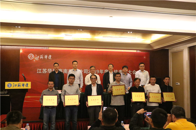 舊歲已展千重錦,新年再進百尺桿。1月4日下午,江蘇華建海南區(qū)域公司隆重召開2019年度總結表彰大會。各工程處、直管團隊及湖北、廣西、宜昌分公司主要負責人,先進集體、先進個人代表,海南公司機關全體人員近百人參加會議。大會由海南分公司副總經理、黨總支副書記郁遠同志主持。