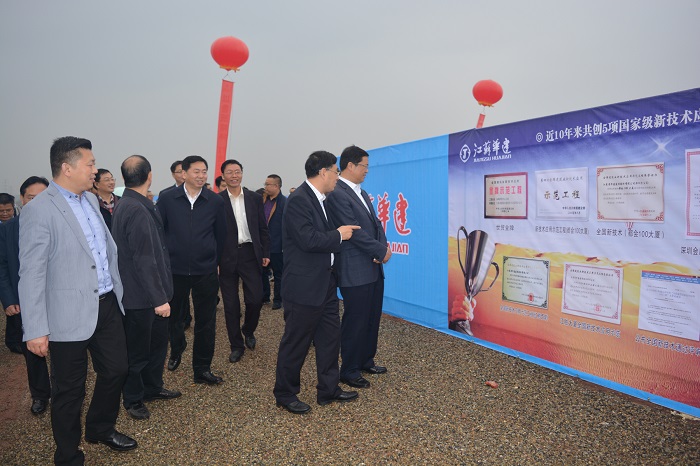 隨后,廣安市委常委、組織部長黃秀川宣布項(xiàng)目開工,現(xiàn)場燃放禮炮,機(jī)械鳴笛,到會(huì)領(lǐng)導(dǎo)及項(xiàng)目業(yè)主代表共同為項(xiàng)目培土奠基。儀式結(jié)束后,各領(lǐng)導(dǎo)來到項(xiàng)目展板前,詳細(xì)了解了本次開工項(xiàng)目有關(guān)情況,當(dāng)經(jīng)過現(xiàn)場通道旁布置的華建展示欄時(shí),黃部長一行還興致盎然地聽取了嚴(yán)總關(guān)于公司情況的介紹。