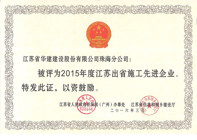 公司被評(píng)為“2015年度江蘇出省施工先進(jìn)企業(yè)”