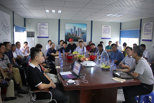 9月8日,在珠海公司總工程師周學(xué)軍陪同下,由深圳公司常務(wù)副總經(jīng)理、總工程師吳碧橋帶隊(duì),深圳公司各工程處生產(chǎn)主任、技術(shù)主任、項(xiàng)目經(jīng)理等一行33人到珠海公司承建的帝景灣山莊和晉和天慶花園項(xiàng)目觀摩交流鋁合金模板施工技術(shù)。周總通過圖文并茂的PPT講解和現(xiàn)場實(shí)地觀摩詳細(xì)介紹了鋁合金模板施工技術(shù)特點(diǎn)以及與傳統(tǒng)木模板施工的差別,對(duì)施工過程關(guān)鍵節(jié)點(diǎn)做法、成本控制做了講解。雙方人員針對(duì)細(xì)節(jié)和質(zhì)量控制問題進(jìn)行了深度交流。