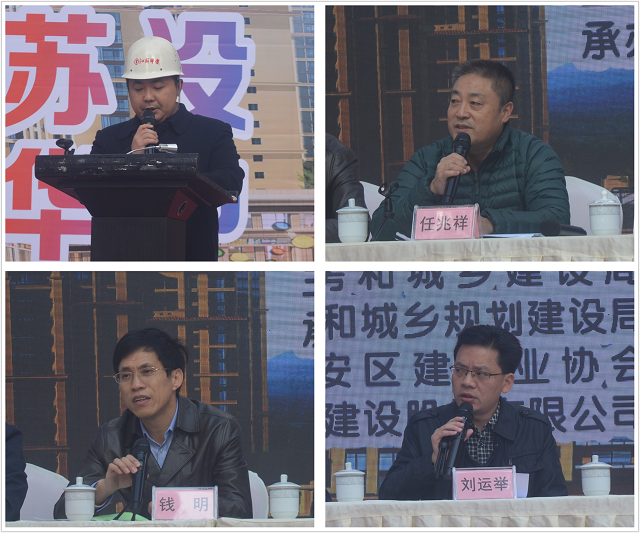 官盛春天項(xiàng)目經(jīng)理曹亞明代表公司介紹了官盛春天項(xiàng)目建筑安全文明施工標(biāo)準(zhǔn)化工作開(kāi)展情況和主體結(jié)構(gòu)施工質(zhì)量控制情況;廣安區(qū)委常委、政法委書(shū)記萬(wàn)良政通報(bào)了今年以來(lái)廣安區(qū)質(zhì)量安全工作開(kāi)展情況;廣安市住建局黨組成員、總工程師劉運(yùn)舉號(hào)召各參會(huì)單位以我司官盛春天項(xiàng)目為榜樣,比學(xué)趕超、奮勇拼搏,努力實(shí)現(xiàn)質(zhì)量安全新突破和新發(fā)展,為不斷推動(dòng)全市建筑質(zhì)量安全水平做出貢獻(xiàn);四川省質(zhì)安監(jiān)督總站副站長(zhǎng)任兆祥結(jié)合全省實(shí)際從狠抓安全生產(chǎn)工作、工程質(zhì)量治理長(zhǎng)效監(jiān)管機(jī)制建立及質(zhì)量安全責(zé)任落實(shí)三方面進(jìn)行強(qiáng)調(diào),并提出了下步工作開(kāi)展計(jì)劃和要求。