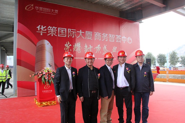 2017年1月9日,第八項(xiàng)目部承擔(dān)施工任務(wù)的華策國(guó)際大廈項(xiàng)目舉行主體結(jié)構(gòu)封頂儀式。橫琴新區(qū)黨委副書記葉真、橫琴新區(qū)建設(shè)環(huán)保局局長(zhǎng)劉晨光,華策集團(tuán)董事局主席楊峰、副主席楊智雄、總裁余道群,江蘇華建副董事長(zhǎng)、總經(jīng)理宗有農(nóng)、珠海公司總經(jīng)理繆國(guó)樞、深圳公司常務(wù)副總吳碧橋、深圳公司副總經(jīng)理蔣超,以及來(lái)自華策集團(tuán)、設(shè)計(jì)單位、參建單位、監(jiān)理單位和珠海區(qū)域公司相關(guān)人員共200余人出席儀式。華策國(guó)際大廈整體分為東塔和西塔兩部分,西塔已于2016年11月8日封頂,隨著東塔的順利封頂,華策國(guó)際大廈全面封頂,并將于2017年部分投入使用,2018年底全部投入使用。