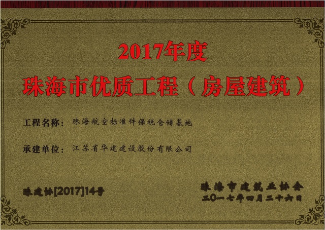 公司2項目獲評珠海市房屋建筑優(yōu)質工程 時間:2017-05-16 4147 近日,珠海市建筑業(yè)協會發(fā)文公布2017年度珠海市優(yōu)質工程名單,我司承建的珠海航空標準件保稅倉儲基地和丹田廣場二期的2個項目榜上有名。