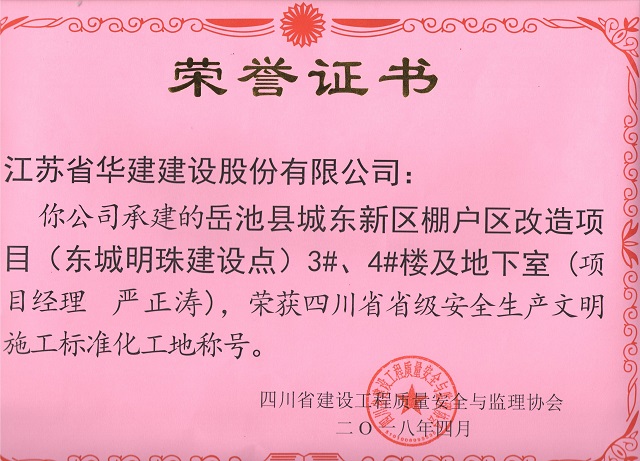 重慶分公司2項(xiàng)目獲評(píng)“四川省安全生產(chǎn)文明施工標(biāo)準(zhǔn)化工地” 時(shí)間:2018-04-20 3273 4月18日,重慶分公司項(xiàng)目創(chuàng)優(yōu)再獲新成果,公司承建的岳池縣城東新區(qū)棚戶區(qū)改造項(xiàng)目(東城明珠建設(shè)點(diǎn))3#、4#及地下室、官盛春天12#、13#樓被四川省建設(shè)工程質(zhì)量安全與監(jiān)理協(xié)會(huì)評(píng)為“四川省省級(jí)安全生產(chǎn)文明施工標(biāo)準(zhǔn)化工地”。至此,重慶分公司獲省級(jí)標(biāo)化工地獎(jiǎng)項(xiàng)已達(dá)3項(xiàng)。