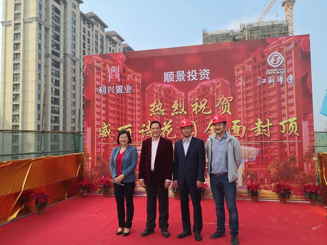 2019年1月14日,第一項目部承擔施工任務的陽江威麗詩花園2期項目提前60天實現(xiàn)主體結構全面封頂。珠海利騰集團董事長黃金紅、總經(jīng)理譚劍云,江蘇華建珠海區(qū)域公司總經(jīng)理呂方達等參加封頂儀式。