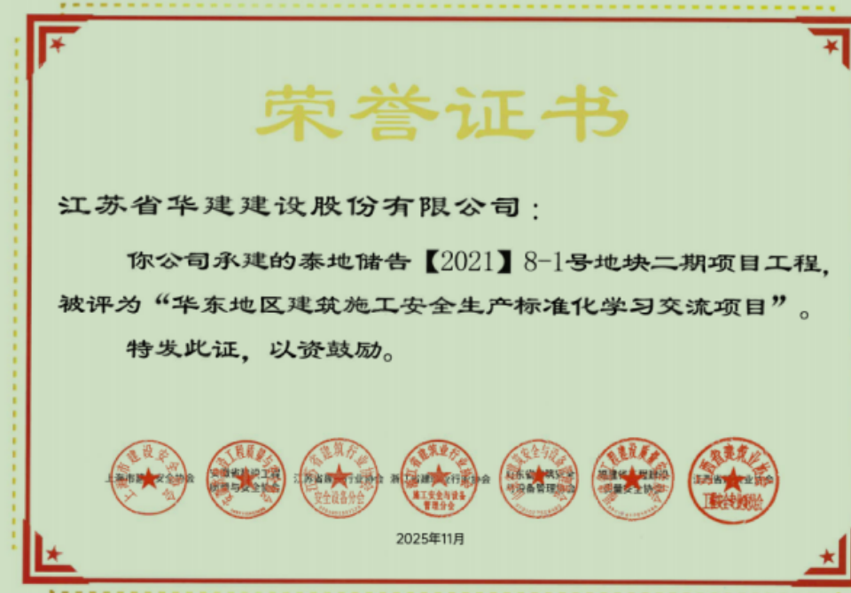 近日,江蘇華建揚州分公司承建的泰地儲告〔2021〕8-1號地塊二期項目榮獲“華東地區(qū)建筑施...