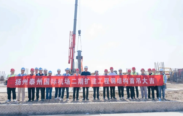 6月18日,揚泰機場二期擴建工程航站樓鋼結(jié)構(gòu)首次吊裝儀式順利舉行。揚州泰州國際機場黨委書記...