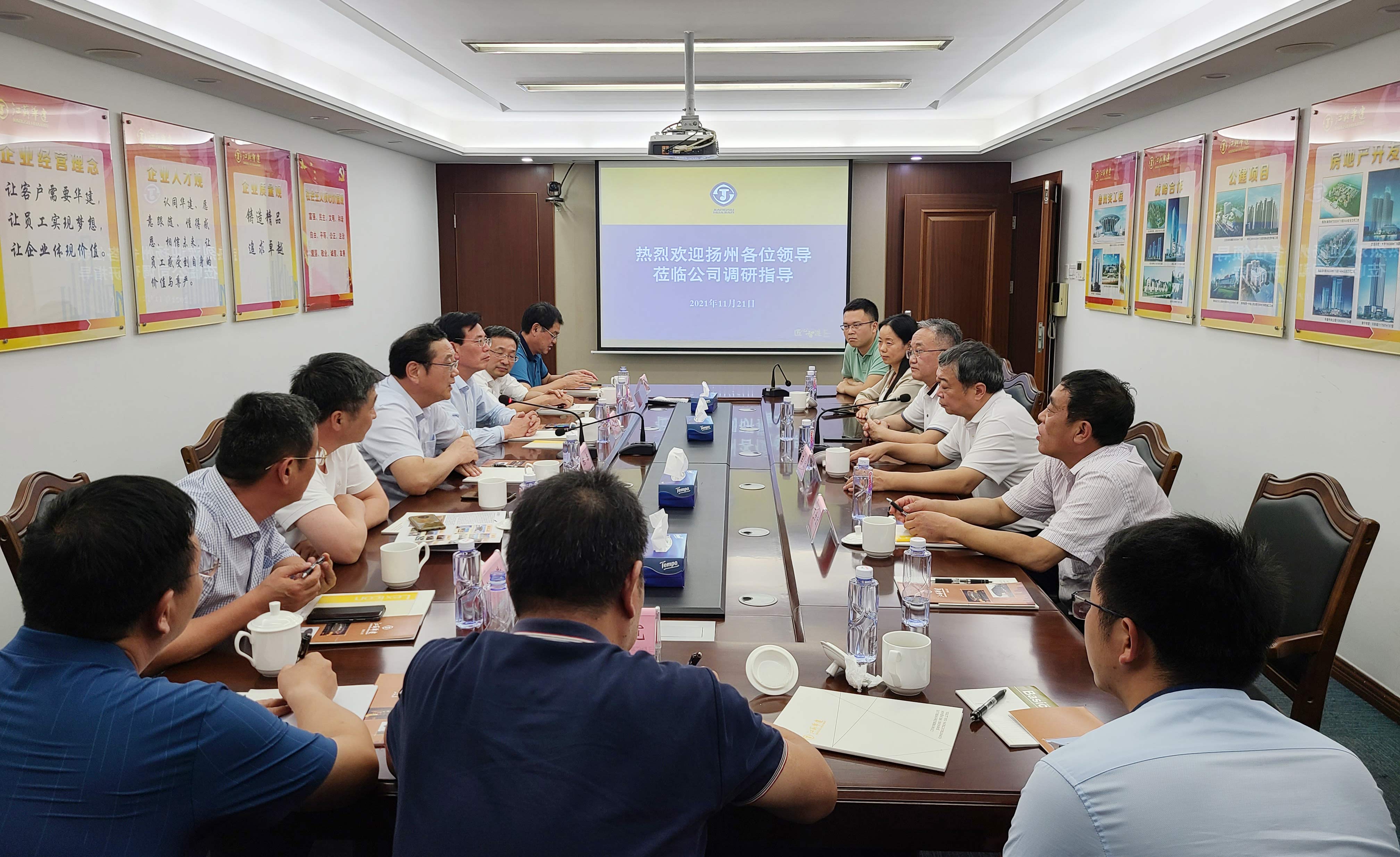 11月21日,揚州市政協(xié)主席陳揚、副主席何金發(fā)、住建局局長陶伯龍等一行蒞臨江蘇華建海南分公...