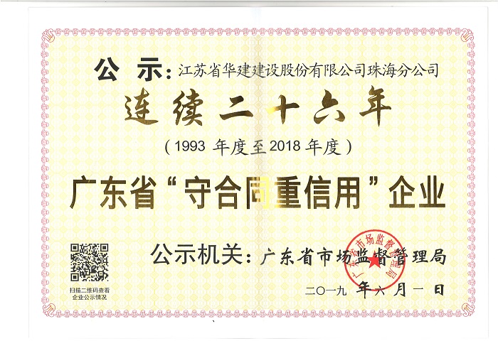 近日,珠海分公司被廣東省市場監(jiān)督管理局(原公示機(jī)關(guān)為廣東省工商行政管理局)授予“連續(xù)二十六...