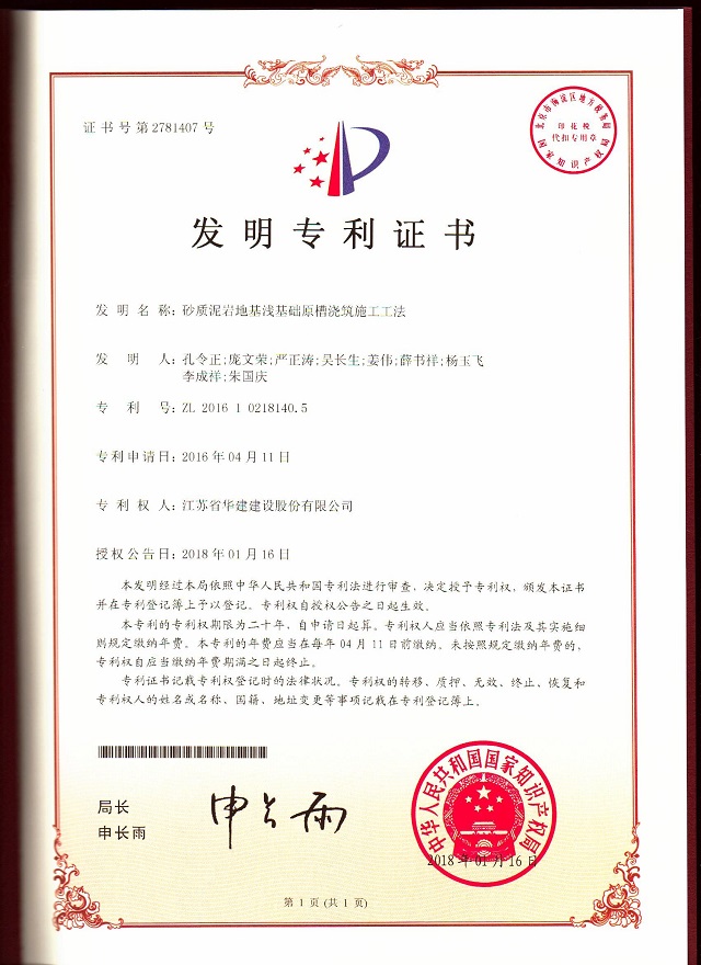 近日,從國家知識產(chǎn)權局傳來好消息,重慶分公司申報的技術成果《砂質(zhì)泥巖地基淺基礎原槽澆筑施工...