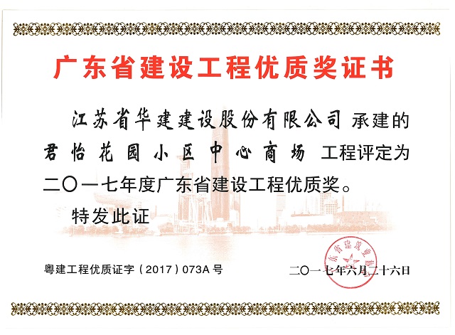 君怡花園小區(qū)中心商場2017年度廣東省建設(shè)工程優(yōu)質(zhì)獎