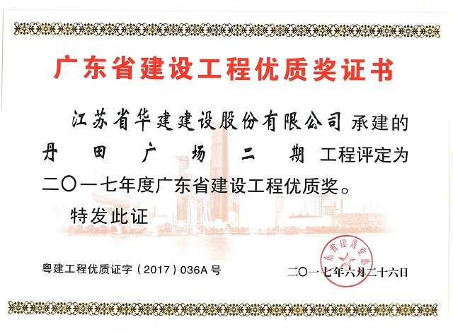 丹田廣場二期2017年度廣東省建設(shè)工程優(yōu)質(zhì)獎