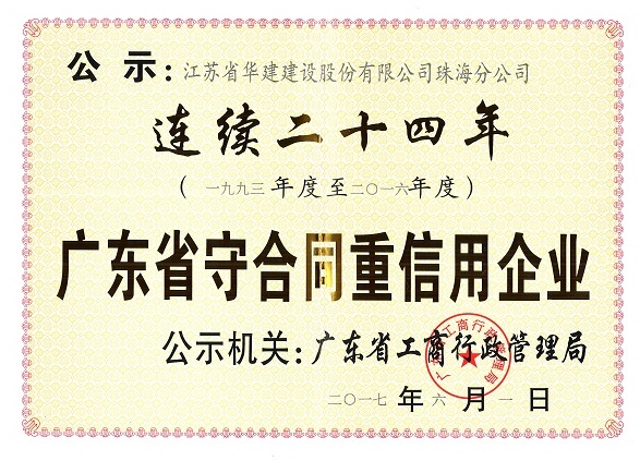 2016廣東省連續(xù)24年守合同重信用企業(yè)