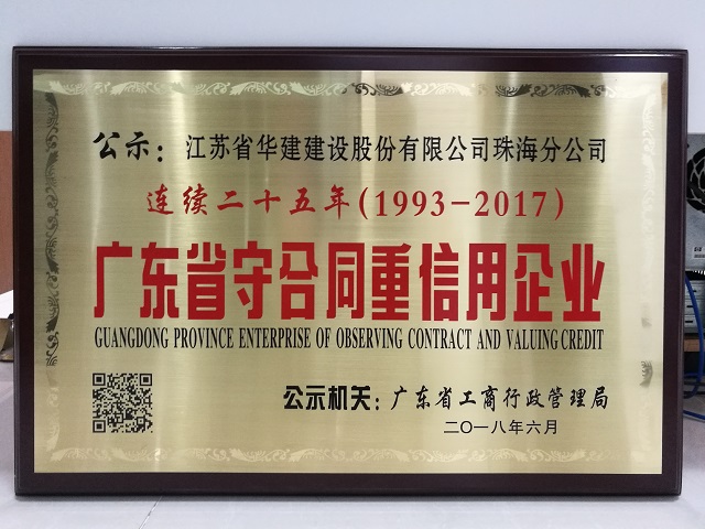 廣東省連續(xù)二十五年守合同重信用企業(yè)