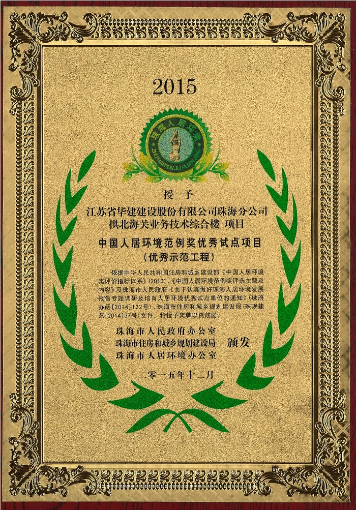 珠海市人居環(huán)境建設(shè)突出貢獻(xiàn)單位(優(yōu)秀建筑施工企業(yè))
