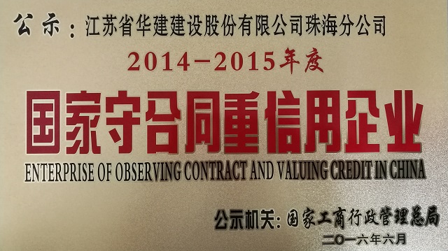 2014-2015年度國(guó)家守合同重信用企業(yè)