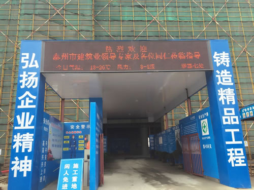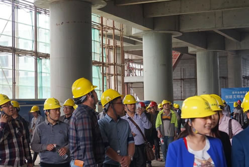 4月21日下午,江蘇華建蘇北分公司承建的泰州金融服務中心現(xiàn)場,彩旗獵獵,熱鬧非凡,泰州市創(chuàng)精品工程觀摩會隆重舉行,泰州市建工局副局長王京陵以及泰州市各市(區(qū))建筑業(yè)主管部門工程創(chuàng)優(yōu)負責人、建筑業(yè)協(xié)會負責人、全市二級以上資質企業(yè)總工程師、技術負責人、創(chuàng)優(yōu)企業(yè)總工程師、項目經理、技術負責人等共計400人參加了觀摩活動,與會人員對江蘇華建在建設金融服務中心興業(yè)大廈過程中創(chuàng)下了江蘇泰州地區(qū)多個之最表示了濃厚興趣,多個之最包括:高度最高(地上58層、設計高度: