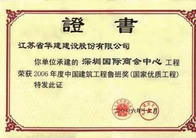 深圳國際商會(huì)中心位于深圳市福田中心區(qū)6-3地塊,是深圳市CBD標(biāo)志性建筑,與會(huì)展中心隔街相望,是深圳會(huì)展經(jīng)濟(jì)圈的地標(biāo),也是深圳第一座擁有智能門禁系統(tǒng)、第一座擁有酒店式行車大廳、中心區(qū)第一座擁有商務(wù)直升機(jī)停機(jī)坪的寫字樓。 本工程是集辦公與商業(yè)為一體的超高層民用建筑,地下3層地上55層,總建筑面積為134081.38平方米,建筑高度216米,結(jié)構(gòu)形式上,主樓為內(nèi)筒外框勁性混凝土結(jié)構(gòu),外墻裝飾主要采用玻璃幕墻,干掛花崗巖和復(fù)合鋁板。本工程于2002年9月3日開工,2004年12月16日竣工。2003年下半年被評(píng)為深圳市優(yōu)質(zhì)結(jié)構(gòu)工程,2004年下半年先后通過了深圳市建筑業(yè)新技術(shù)應(yīng)用示范工程驗(yàn)收和江蘇省第八批新技術(shù)應(yīng)用示范工程驗(yàn)收,新技術(shù)應(yīng)用“總體上達(dá)到國內(nèi)領(lǐng)先水平”。此工程應(yīng)用了建筑業(yè)10項(xiàng)新技術(shù)中的9項(xiàng),其他新技術(shù)8項(xiàng),重點(diǎn)創(chuàng)新新技術(shù)2項(xiàng)。在施工過程中,多次受到有關(guān)各方組織的觀摩會(huì)、參觀會(huì),2005年獲深圳市優(yōu)質(zhì)工程“金牛獎(jiǎng)”、廣東省“金匠獎(jiǎng)”、江蘇省“揚(yáng)子杯”,并榮獲“中國十大金牌寫字樓”榮譽(yù)稱號(hào)。2006年獲全國建筑最高獎(jiǎng)——魯班獎(jiǎng)。