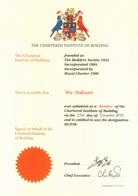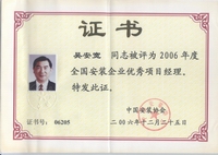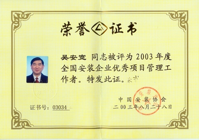 2002年開始他被聘為北京市建設(shè)工程評(píng)標(biāo)專家;2003年獲“中國安裝企業(yè)優(yōu)秀項(xiàng)目管理工作者”稱號(hào),2004年獲全國工程建設(shè)“優(yōu)秀項(xiàng)目經(jīng)理”稱號(hào);2006年獲全國安裝企業(yè)優(yōu)秀項(xiàng)目經(jīng)理; 2007年獲揚(yáng)州市國資委黨委頒發(fā)的“三強(qiáng)”黨支部書記稱號(hào);2008年12月獲得中共北京市外地在京施工企業(yè)委員會(huì)頒發(fā)的在奧運(yùn)工程建設(shè)中的優(yōu)秀共產(chǎn)黨員;2009年獲“江蘇省建筑業(yè)企業(yè)杰出建造師”和中國建筑業(yè)協(xié)會(huì)頒發(fā)的“全國建筑業(yè)企業(yè)優(yōu)秀項(xiàng)目經(jīng)理”榮譽(yù)稱號(hào)。2009年他還參加了英國皇家特許建造師(CIOB)國際執(zhí)業(yè)資格認(rèn)證培訓(xùn)。目前,他已順利通過考試,獲得英國皇家“英國特許建造師”資格。
