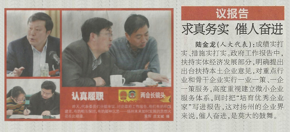 《揚(yáng)州日?qǐng)?bào)》報(bào)道陸董事長參加市人代會(huì)情況