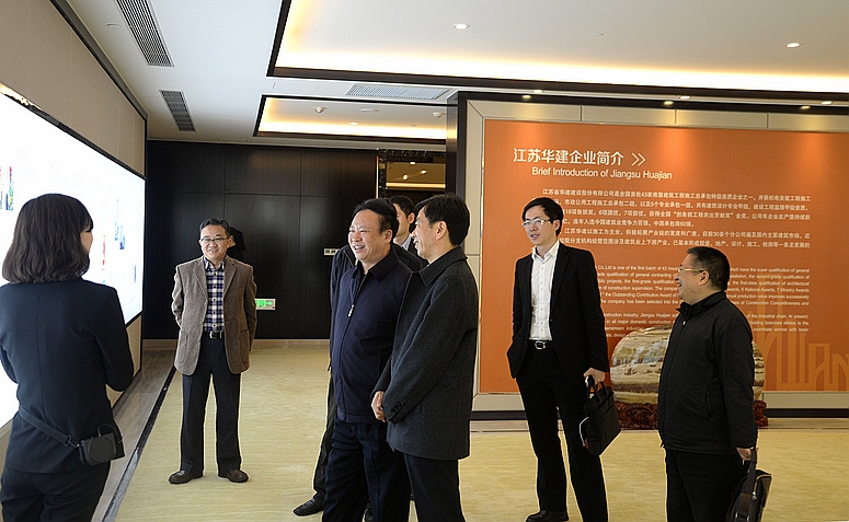 ,中國施工企業(yè)管理協(xié)會會長、原國家發(fā)改委副主任曹玉書一行來公司走訪調(diào)研。在陸金龍董事長陪同下,曹會長一行參觀了華建企業(yè)展示中心,詳細了解了公司發(fā)展歷程、市場分布、產(chǎn)業(yè)結(jié)構(gòu)和企業(yè)文化,曹會長表示華建近年取得的成績值得肯定,發(fā)展模式值得借鑒, 特別是創(chuàng)優(yōu)成績不俗。在會客廳陸董事長分享了企業(yè)發(fā)展理念并就宏觀經(jīng)濟形勢和大家進行了分析和討論。曹會長最后表示中施企協(xié)作為施工企業(yè)的管理協(xié)會將一如既往地為企業(yè)提供幫助和支持,全力服務(wù)企業(yè)。華建作為行業(yè)的佼佼者要繼續(xù)努力,再創(chuàng)佳績,創(chuàng)優(yōu)要越創(chuàng)越多,企業(yè)要做大做強,進一步放大品牌聲譽和影響力。中施企協(xié)副會長、秘書長李鴻慶及相關(guān)部門負責人,公司領(lǐng)導(dǎo)程杰、陸俊、吳碧橋等參加活動。