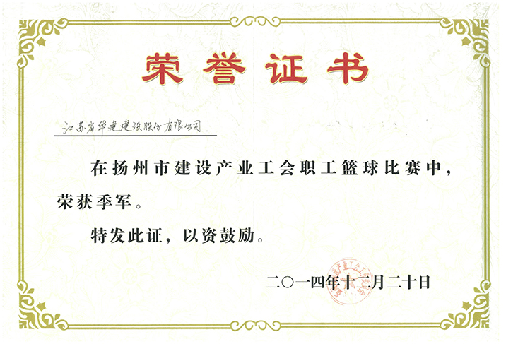 公司籃球隊獲市建設產業工會籃球賽季軍 時間:2014-12-22 4566 12月20日,在揚州市職業大學瘦西湖校區體育館舉辦的“揚州市建設產業工會籃球比賽”中,由總部機關、設計院和檢測中心職工組成的公司籃球隊努力拼搏、奮勇爭先,以兩勝一負的戰績榮獲比賽季軍。 建設產業工會田主席為公司籃球隊頒發獎狀