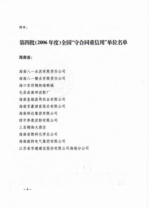 企業(yè)誠(chéng)信榮譽(yù) 時(shí)間:2019-01-01 9051 2001-2002年度海口市守合同重信用 2003-2004年度海口市守合同重信用 2005-2006年度??谑惺睾贤匦庞?nbsp; 2002-2004年度海南省守合同重信用 2006年度全國(guó)守合同重信用1 2006年度全國(guó)守合同重信用2 2006年度全國(guó)守合同重信用3 2006年度全國(guó)守合同重信用4 2012年度海南省守合同重信用