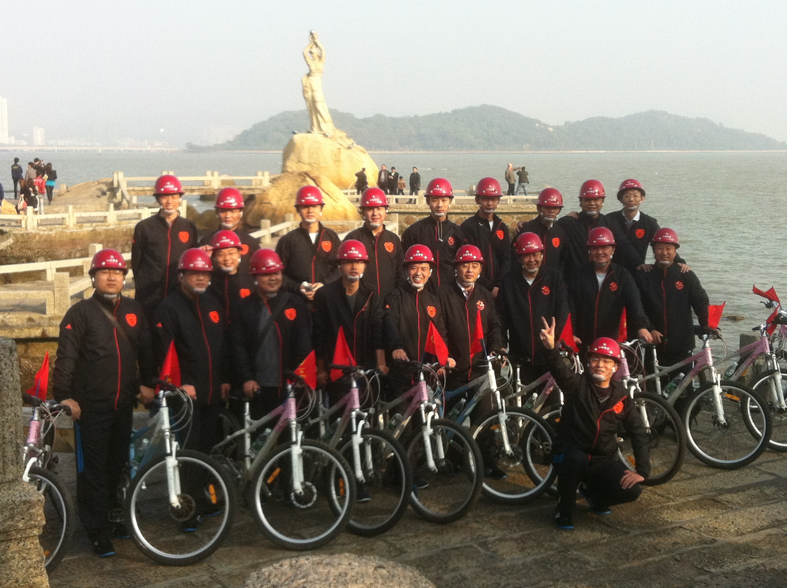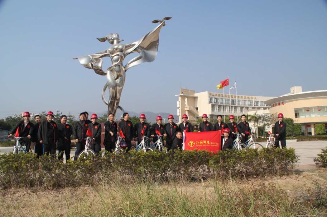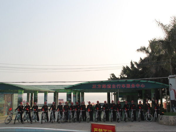 2012年1月1日上午9時,珠海區(qū)域公司全體員工在公司經(jīng)理室的帶領(lǐng)下,統(tǒng)一著裝,頭戴印有江蘇華建標識的安全頭盔,騎著統(tǒng)一插有江蘇華建小紅旗的自行車,沿著珠海海濱綠道開展騎自行車迎新年活動。騎行的起點是珠海海濱浴場,終點是珠海淇澳島,來回全程56公里。騎行過程中,隊伍有序安全行進,引導(dǎo)車上醒目的江蘇華建大旗迎風(fēng)招展,每輛自行車前面的江蘇華建小紅旗也分外引人注目??妵鴺锌偨?jīng)理身先士卒,騎行在隊伍的最前面,無論是年近6旬的老員工,還是剛工作不久的新員工,個個爭先恐后,奮勇向前,江蘇華建這支特殊的“騎兵隊”在新年的第一天飛行在珠海的海濱綠道上,形成了一道亮麗的風(fēng)景線,引得許多路人和游客紛紛駐足觀望,許多攝影愛好者也紛紛舉起手中的相機爭相拍照。 這次元旦騎自行車活動既是一次低碳環(huán)保生活的宣傳,也是一次江蘇華建員工良好精神風(fēng)貌的展現(xiàn),通過這次活動既鍛煉了員工的體魄,更激發(fā)了員工們新的一年里奮發(fā)向上,團結(jié)拼搏,奔向新未來的昂揚斗志。