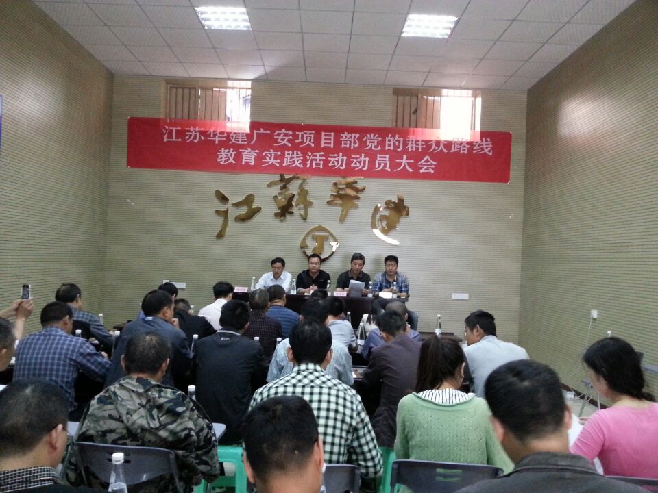 2014年4月16日,江蘇華建四川廣安官盛新區(qū)基礎(chǔ)設(shè)施暨美好家園建設(shè)項目部黨小組召開黨的群眾路線教育實踐活動動員大會。項目部所有黨員及各重要崗位管理人員共40余人參加會議。會議由珠海區(qū)域公司副總經(jīng)理嚴(yán)正濤主持。珠海區(qū)域公司副總經(jīng)理、總工程師周學(xué)軍在會上傳達了上級黨委關(guān)于深入開展黨的群眾路線教育實踐活動的實施方案和總的要求。珠海區(qū)域公司辦公室相關(guān)人員向與會者詳細介紹了本次活動所著力反對的“四風(fēng)”的主要表現(xiàn)形式。官盛鎮(zhèn)黨委副書記馬江林參加會議,并對黨小組相關(guān)活動的開展提出了具體要求和指導(dǎo)意見。