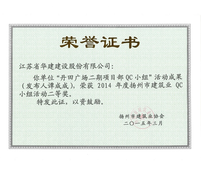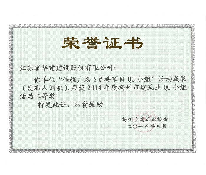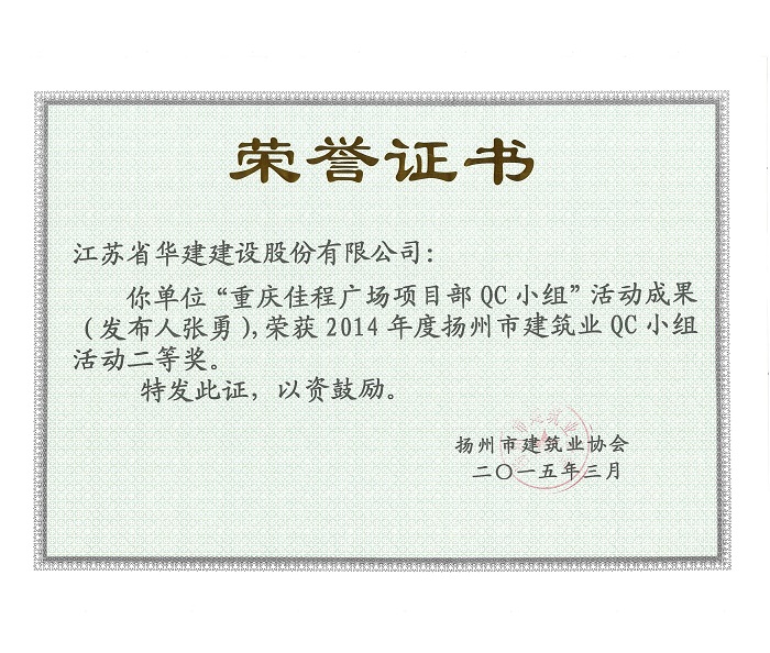 近日,揚州市建筑業(yè)協(xié)會發(fā)文表彰了2015年度全市建筑業(yè)QC小組活動成果獎,公司共有5項成果獲獎,其中,“孔令正QC小組”活動成果《剝蝕丘陵地貌多形截面鋼筋混凝土灌注樁施工新方法》榮獲一等獎,“佳程廣場5#樓項目QC小組”活動成果《提高核心筒筒體結構施工質(zhì)量》、“重慶佳程廣場項目部QC小組”活動成果《提高現(xiàn)澆混凝土樓梯結構施工質(zhì)量》、“丹田廣場二期項目部QC小組”活動成果《提高蒸壓加氣混凝土砌塊外墻合格率》榮獲二等獎,“馬賽公館項目部QC小組”活動成果《 提高耐磨金剛砂地面施工質(zhì)量》榮獲三等獎。