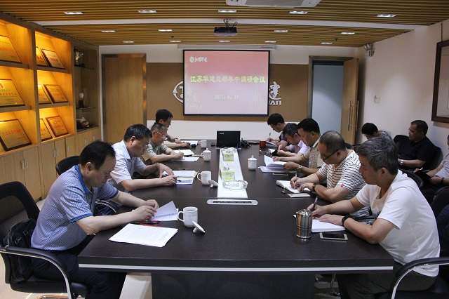 2017年6月11日,江蘇華建總經(jīng)理宗有農(nóng)、副總經(jīng)理、總工程師程杰、審計(jì)部經(jīng)理王琳及辦公室主任余濤一行蒞臨珠海區(qū)域公司,開展年中調(diào)研工作。區(qū)域公司經(jīng)營層、各部室負(fù)責(zé)人參加調(diào)研會議。