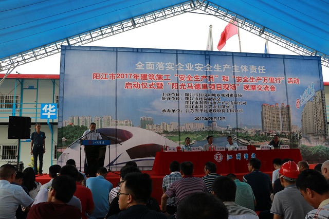 6月13日,2017年陽江市建筑工程安全生產(chǎn)文明施工示范工地現(xiàn)場觀摩會(huì)在陽江公司陽光馬德里項(xiàng)目隆重舉行。陽江市住房規(guī)劃建設(shè)局分管安全生產(chǎn)副局長,建管科、市質(zhì)安監(jiān)站全體人員,市建筑協(xié)會(huì)負(fù)責(zé)人,各縣(市、區(qū))住房規(guī)劃建設(shè)局分管安全生產(chǎn)副局長,建管股股長、質(zhì)安監(jiān)站站長,市直各施工企業(yè)和監(jiān)理企業(yè)分管安全生產(chǎn)領(lǐng)導(dǎo)、質(zhì)安部門負(fù)責(zé)人,以及全市600余位建設(shè)施工企業(yè)代表參加大會(huì)并觀摩陽光馬德里施工現(xiàn)場。