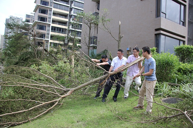 8月23日12時50分前后,強臺風“天鴿”在廣東省珠海市金灣區(qū)南部沿海登陸,“天鴿”中心經(jīng)過附近海域或地區(qū)有14-15級大風,陣風可達16-17級。臺風過后,珠海一片狼藉,百分之六十以上的綠化遭到了臺風的嚴重破壞,道路通行嚴重受阻,水、電、通信也被阻斷。臺風對我公司機關宿舍和在建工地也造成了巨大損失。