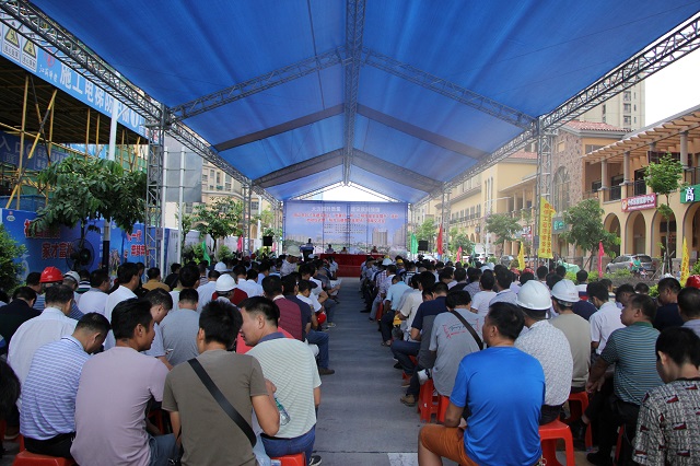 繼“2017年陽江市建筑工程安全生產(chǎn)文明施工示范工地現(xiàn)場觀摩會”之后,9月6日,陽江市“2017年建筑施工質(zhì)量月和工程質(zhì)量安全提升活動啟動儀式暨現(xiàn)場觀摩交流會”再次在我公司總包承建的陽光馬德里項目現(xiàn)場隆重舉行。陽江市住房規(guī)劃建設(shè)局分管質(zhì)量安全副局長張牛、市質(zhì)安監(jiān)站站長林子歡、市建筑協(xié)會會長梁榮照,市建管科、質(zhì)安監(jiān)站全體人員,各縣(市、區(qū))住房規(guī)劃建設(shè)局分管質(zhì)量安全副局長、建管股股長、質(zhì)監(jiān)站站長,市直各施工企業(yè)和監(jiān)理企業(yè)分管工程質(zhì)量領(lǐng)導(dǎo)、質(zhì)安部門負(fù)責(zé)人,市區(qū)在建工程建設(shè)單位代表,施工單位項目經(jīng)理、質(zhì)量員,監(jiān)理單位項目總監(jiān)和專業(yè)監(jiān)理工程師,各縣(市、區(qū))在建重點項目建設(shè)單位代表、施工單位項目經(jīng)理、監(jiān)理單位項目總監(jiān)等400余人參加大會并觀摩陽光馬德里二期56-61棟施工現(xiàn)場。